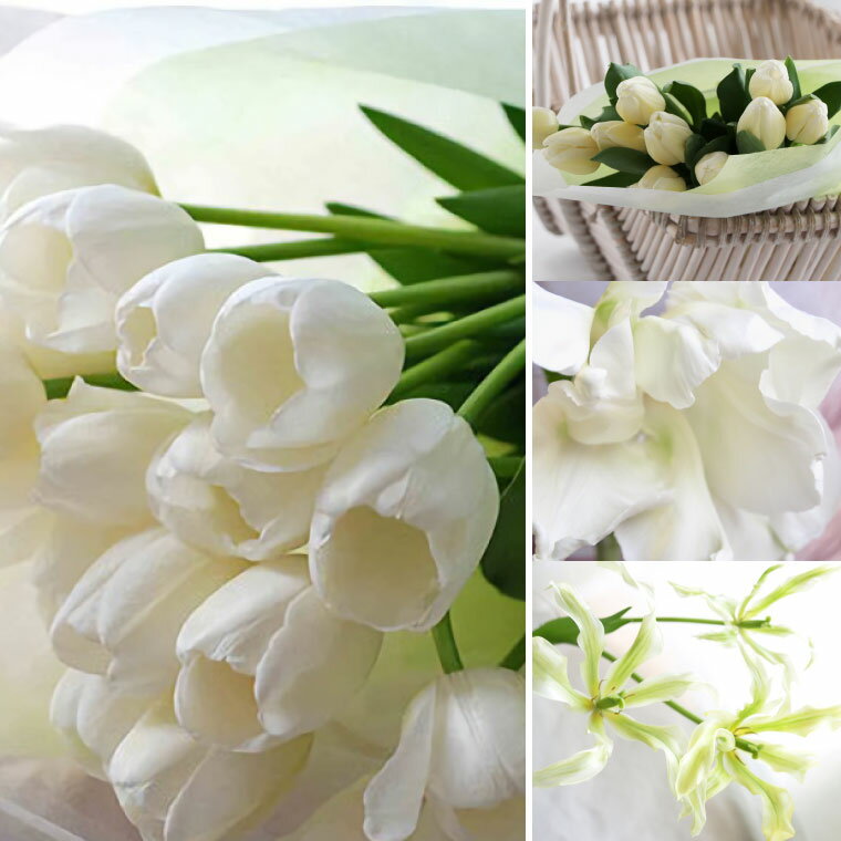 商品情報 【白いチューリップの花束(20本)】 真っ白なチューリップであなたの気持ちをお届けします。